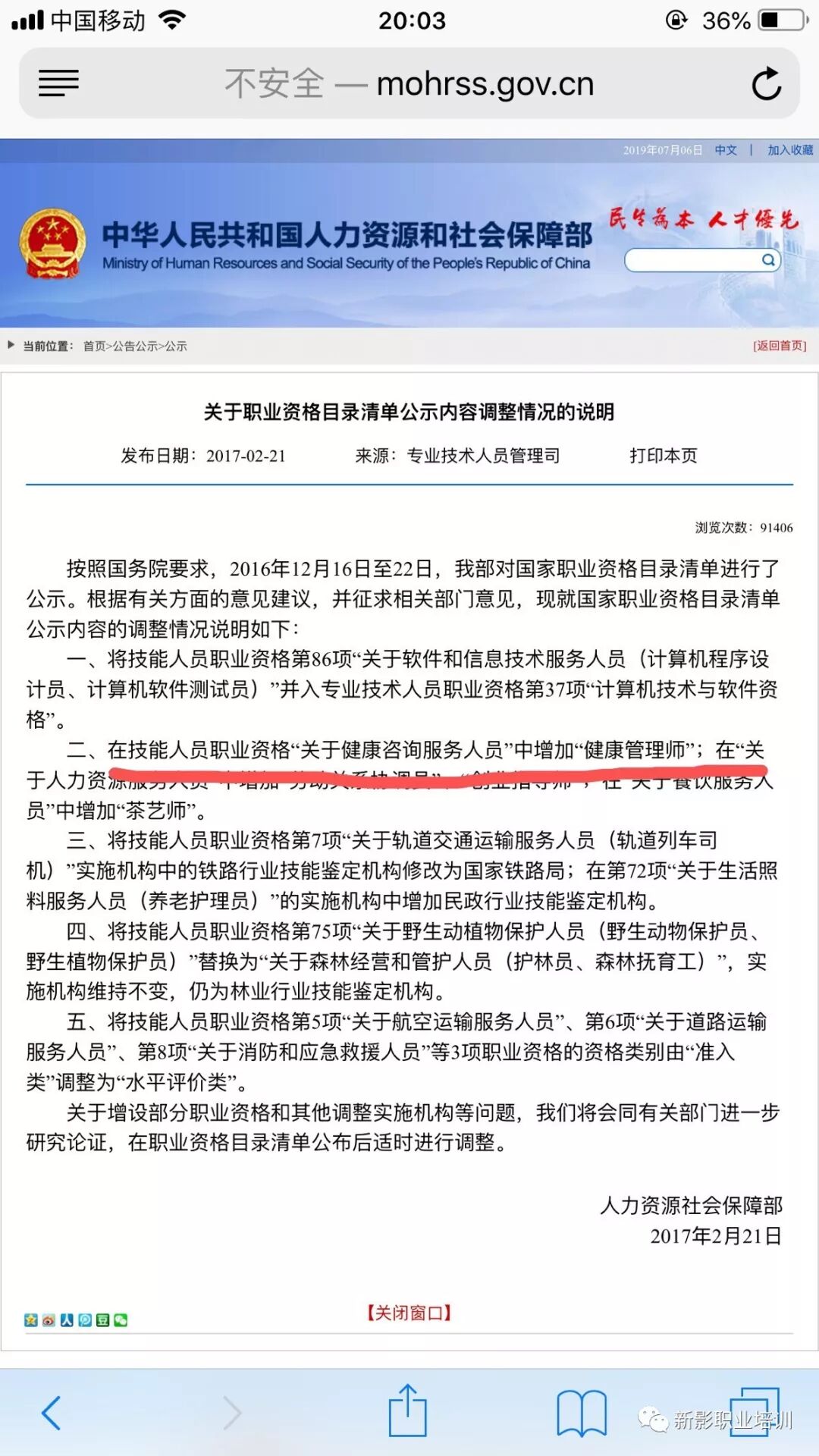 2、 2017年2月21日健康管理师正式进入国家职业目录清单;